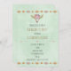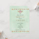 Una fresca invitación a una soltera con una temática jocosa con motivos del suroeste. Está situado sobre un fondo acuático de color verde claro con formas de diamante parduzco de bronce que bordean la parte superior e inferior de la invitación. Un cráneo de vaca de aspecto moderno con arreglos florales de moda complementa este diseño tribal. Un lindo corazón rosado y puntos actúan como separador de líneas en el medio.