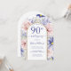 Invite a sus huéspedes a su fiesta de cumpleaños número 90 con estilo con esta moderna invitación a la plancha floral con arco llano, florida y florida flor de color rosa y morado con un purpurina de oro. Personalice todos los detalles de su fiesta en un guión elegante. Diseñado por Susan Coffey.