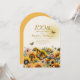 Elegantes girasoles y mariposas invitan a la fiesta de cumpleaños número 100 en forma de arco de las mujeres. Comuníquese conmigo para obtener ayuda con sus personalizaciones o para solicitar productos adicionales de correspondencias o coordinación de Zazzle para su fiesta.
