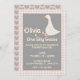 Invite a su familia y amigos con este chica de personalizable a una fiesta tonta de oca a su cumpleaños. Cuenta con un ilustracion acuarela de una preciosa oca blanca con un borde de gingham rosa y un corazón trenzado. Personalice agregando sus detalles. Puede cambiar el tipo de letra/color. Diseño rosa, blanco y gris.