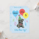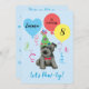 Estás invitado a un cumpleaños Paw-ty con este adorable cachorro de gorra escocés Terrier, vestido de fiesta, rodeado de globos coloridos y serpentines. El texto se puede personalizar fácilmente. Se dispone de suministros de fiesta coincidentes.
