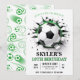 ¡Prepárate para empezar la diversión con esta invitación al cumpleaños de fútbol lleno de acción! Perfecto para cualquier aficionado al fútbol, este diseño presenta un gráfico 3D dinámico de una pelota de fútbol estrellándose a través de una pared, lo que crea un aire emocionante y de alto impacto. El diseño limpio y moderno con un texto verde y negro en negrita es perfecto para celebrar el décimo cumpleaños de Skyler. Esta invitación hará que sus invitados se sientan animados por un día de goles, juegos y celebraciones. Todos los detalles son totalmente personalizables, por lo que puede editar fácilmente el nombre, la edad, la fecha, la hora, el lugar y la información de RSVP.