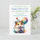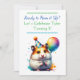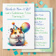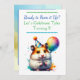 Invitaciones a la fiesta de cumpleaños de un niño con temática de hámster azul y verde. Un hámster acuático con un globo. ¡Cuidado para los niños de cualquier edad!
