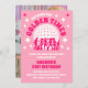 Esta invitación a la fiesta rosa incluye una bola de discoteca y una tipografía retro, lo que le da un ambiente divertido y lúdico. La fachada de la invitación está decorada con un fondo rosa y una brillante bola de disco, estrellas, chicas de baile que dan un ambiente muy animado y enérgico a la celebración. La tipografía retro se suma a la temática, dando a la invitación un toque nostálgico de moda. En el reverso de la invitación, foto personalizado del chica de cumpleaños añadiendo un toque personal al diseño.