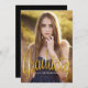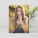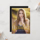 Un diseño moderno simple y encantador que presenta la foto de su graduado en la parte delantera con todos los detalles del fiesta o la invitación en la parte trasera. Tipografía cursiva de moda en oro con un toque femenino y juguetón. Una forma divertida y hermosa de destacar la celebración de la graduación de tu hija.