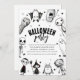 Halloween es un momento emocionante del año para que los niños y familias celebren junto con disfraces, dulces y, por supuesto, fiestas. Las invitaciones a estos eventos anuales son una parte importante para establecer el tono de las festividades, y este año, puedes hacer que tus invitaciones sean aún más especiales con un diseño único y creativo. La invitación a la fiesta de halloween para los niños, diseñada con ilustraciones blancos y negros, hará que tu fiesta se distancie. Imaginen personajes clásicos de Halloween como murciélagos, momias, dracula, brujas, Frankenstein, fantasmas y monstruos, todo enmarcado por estrellas negras y grises para una llamativa plantilla moderna de invitación. Seguro que llama la atención y entusiasma a sus invitados por las fiestas.