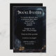 Una luna llena, cabeceras, un jack o'lantern, y velas se combinan para hacer una espeluznante y divertida invitación a la fiesta de Halloween.