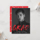 Invite a los huéspedes a celebrar el grado con nuestras invitaciones a la fiesta de graduación de fotos de Modern Paint Splatter. El diseño presenta la foto vertical del graduado con "Grad" en letras rojas con salpicaduras de pintura blanca. Personalice la parte delantera de las invitaciones creativas a la fiesta de graduación agregando el nombre del graduado, el nombre de la escuela y el año de graduación. La parte posterior de la invitación muestra los detalles de su fiesta de graduación con un fondo de salpicaduras de pintura roja y blanca. La invitación a la fiesta de graduación fotográfica es perfecta para fiestas de graduación de secundaria y universitarios.