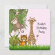 Típico mono, tigre, jirafa y chicas de león jungle safari tema de cumpleaños invitaciones a fiestas de cumpleaños. Añade tus detalles al frente y/o al revés simplemente agregando tus detalles del evento, estilo de fuente, tamaño de fuente y color, y texto. Algunos gráficos ilustran doodles deliciosos.