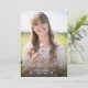 Esta elegante tarjeta de graduación incluye caligrafía dorada rosa bonito y una gran foto. El falso guión de Relieve metalizado de oro rosa que aparece en la parte inferior dice "Graduado" en letras minúsculas, decoradas con elegantes florecientes. Añada el nombre del graduado y el año de graduación al frente del diseño tipográfico. La parte posterior de la tarjeta de graduación incluye una plantilla para agregar detalles de la fiesta de graduación.