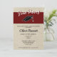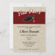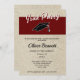 Invitación a la fiesta de graduación de Cap. Invitación a graduación con tapa de graduación en un fondo rojo oscuro. El texto tiene un fondo rústico beige. Personaliza tu texto.