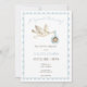 La bienvenida es pequeña, con un encanto y un poco de fantasía. Nuestra encantadora invitación a la ducha de bebé incluye una cigüeña de color agua con su precioso paquete, con el título, "entrega especial". Un bebé que duerme flota en una cinta azul rodeada de dos palomas resalta la parte de atrás. El blues, los cremas y los grises crean un ambiente cálido y de cuentos en un fondo blanco y fresco. ¡Ideal para celebrar con un toque de fantasía y maravilla! Creado por Simply Farmhouse Press.