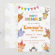 Celebrate your little one turning ONE with this colorful Party Animals birthday invitation! Featuring cute animals, bright bunting, and playful details, this professionally printed card is perfect for first birthday celebrations and kids party themes.
