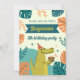 Diseño de tarjeta de invitación de cocodrilo colorido y alegre perfecto para niños, padres, abuelos, hermanos que aman la naturaleza y los animales. Diseño creativo y lindo para la fiesta de cumpleaños de los niños. Ideal para eventos como cumpleaños, feliz cumpleaños, fiesta, regalo, globo, infancia.