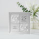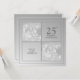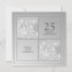 La invitación de aniversario de bodas de plata con foto de pasado y presente es perfecta para aquellos que celebran su 25º aniversario de bodas, a menudo denominado aniversario de bodas de plata. Personalice la parte frontal de esta tarjeta con una foto del día de la boda y otra foto actual de la pareja. © Mañana 6
