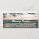 Tarjetas de detalles de boda en destino de playa con un entorno de playa de palmeras tropicales, luces centelleantes de cuerda y una plantilla moderna de información de boda.