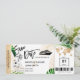 Ticket de Pase de Abordar Boda en la Playa Dorado con icono de Avión y Barco de Crucero con Hojas Tropicales Salva la Fecha