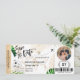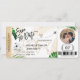 Destino Pase de Abordar Boleto de Boda de Playa Dorado con corazón e icono de avión con hojas tropicales. Agrega tu foto