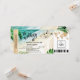 Destino Isla Tropical Boda en la Playa Pase de Abordar Ticket Avión Dorado invitación de boda con corazón e icono de avión con hojas tropicales