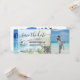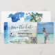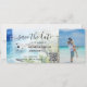 Pase de embarque de la tarjeta de bodas de playa de destino Billete de avión dorado Guarde la fecha con ilustración de playa de palma de acuarela, México o cualquier otro lugar tropical. Agregue su código QR y foto