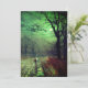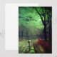 Tarjeta que presenta la pintura de John Atkinson Grimshaw A Moonlit Evening (1880). Una luna embrujadora llena el cielo nocturno de la Inglaterra victoriana mientras una mujer permanece en una calle arbolada. Frente a ella hay un edificio iluminado. Un gran regalo para los fanáticos del Romanticismo y la Inglaterra victoriana.