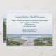 Invitación de boda con una pasarela a través de la imagen de la vegetación costera. Se ve un mar en calma al final del camino entablado. El texto está impreso sobre el horizonte en color azul verdoso. Esta fuente de escritura aparece como si la invitación hubiera sido escrita a mano usando una pluma de ave anticuada. Esto hace que la apariencia sea muy única, con espacio para nombres completos o primeros nombres en la parte superior en texto más grande. La información restante de la ceremonia, con recepción y / o redacción de RSVP según sea necesario. Por favor, use la herramienta de diseño para cambiar la fuente si necesita algo diferente o contácteme. El papel de fieltro que se muestra es una de muchas selecciones de papel.
