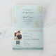 Invite guests on the adventure of a lifetime with this passport-style wedding invitation in soft sea green and teal tones. The cover features a modern monogram crest for an elegant first impression, while the inside includes travel-inspired passport stamps, a couple photo, and lush gold details that add a touch of destination-wedding glamour. Perfect for beach ceremonies, elopements, and celebrations abroad, it blends style, personality, and wanderlust in one beautifully designed keepsake. Customize yours today and start the journey in unforgettable style!