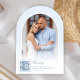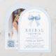 Invitación Pastel Azul Coquette Bow Arch Foto Ducha de novia