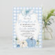 EDITABLE Pastel Azul Pequeña Calabaza Gingham Invitación de Primer Cumpleaños Elegante Nuestra Calabaza Pequeña Está Girando Invitación De Fiesta De Cumpleaños