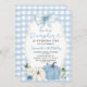 Invitación Pastel Blue Little Pumpkin Gingham Primer Cumpleañ