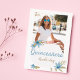 Simple pastel colors floral Quinceañera Birthday Party invitation featuring the Quinceañera Party vertical photo with "Quinceañera" displayed in modern blue lettering Personalize the photo. The invite reverses to display your birthday party details with a simple gold frame on a white background. Customize this design with your message and personalized information. All designs are printed.