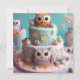 PASTEL DE BÚHOS DE OJOS GRANDES ADORABLES EN LA PARTE DELANTERA ES UN TEMA DIVERTIDO PARA LA INVITACIÓN DE CUMPLEAÑOS DE TU HIJO.