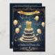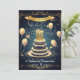 Celebre con estilo esta sofisticada invitación de cumpleaños, con una torta ornamentada de tres niveles adornada con filigree dorada y velas brillantes. El fondo azul marino de las profundidades realza los acentos dorados del champán y los delicados globos flotantes, creando un ambiente de elegancia refinada. Perfecto para cumpleaños, fiestas exclusivos y celebraciones de lujo.