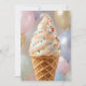 A whimsical fun glassy ceramic like ice cream cone with sprinkles birthday party invitation for female child or adult. Beautiful pastel balloons in colors like pink, blue, sage green and gold for a background. On the back you can edit all the details of your birthday party.