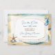 Elegante y romántico matrimonio con temática oceánica de la costa Salven las tarjetas Date. Agua azul pálido de arena marrón pastel y un dólar de arena en la playa. Caballo de mar acuático y pez estrella.