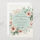 Delicate pastel peach blooms and soft sage greenery create an ethereal and romantic atmosphere. This design evokes a feeling of gentle charm and understated elegance for your special day. The artistic floral arrangement suggests a whimsical, lighthearted celebration.