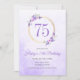 Invitación Pastel Purple Floral Golden Wreath cumpleaños 75