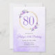 Invitación Pastel Purple Floral Golden Wreath cumpleaños 80