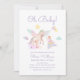 Cuidada acuarela "Oh Baby!" cuento de hadas de unicornio, diseño con decoración de unicornio pastel, rosa, verde, amarillo y princesa con un impresionante globo estelar, nube y espacio. plantilla totalmente editable, fácilmente personalizar el texto. Ideal para una niña fiesta de ducha todo el año.