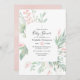 Decoración de inspiración orgánica, tonos rosas y verde pastel, invitación a la ducha de bebé diseñada para ser rápida y fácilmente adaptada a las necesidades específicas de cada evento.