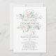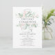 La vegetación de inspiración orgánica luce tonos rosa y pastel de menta primera invitación a la comunión sagrada con un marco geométrico diseñado para ser rápida y fácilmente adaptado a las especificaciones de tu evento.
