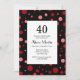 Invitación Pastel Ruby Cranberry Polka Dot Negro 40 Cumpleaño