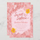 A tu hija le encantará esta elegante invitación de JessicaAmber para la fiesta de cumpleaños. Esta tarjeta presenta una bonita combinación de tonos rosa pastel. Un tipo de letra de escritura femenina le dice que es un dulce dieciséis, y usted puede editar el texto para el nombre de la persona de cumpleaños, y los detalles del fiesta, incluyendo la ubicación, fecha y hora. El fondo está formado por hojas de palma rosas y flores de hibisco amarillas de estilo tropical veraniego. ・・・ Para más suites de cumpleaños, visita mi tienda Zazzle.com/EventsByJessicaAmber ・・ Para órdenes de personalizados, envíame un mensaje a Zazzle
