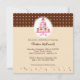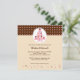 Una invitación a la ducha nupcial moderna. Dispone de armarios en un soporte con espolvorines en la parte inferior. El patrón de los puntos de polka en la barra superior. Combinación de colores marrón y crema con acentos rosa y blanco.