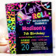 Invitación Patinaje Sobre Ruedas Tema Leopardos Arcoíris Años