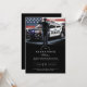 A bold and patriotic design created for future law-enforcement graduates. Featuring a saluting police officer, a full-color American flag, and a patrol vehicle with flashing lights, this layout celebrates duty, courage, and achievement. Personalized details stand out against a sleek black background, making it a powerful keepsake for academy graduations and police career milestones.