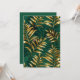 Patrón continuo de oro, joyas, ramas de helecho brillantes y hojas sobre fondo verde texturizado de bosque. Helecho dorado.