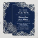 Invitación patrón de encaje blanco moderno boda azul marino