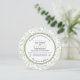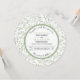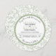 Patrón de hojas verdes envejecidas alrededor de la invitación a la boda. El foco de esta encantadora invitación a la boda es un patrón floral hecho de hojas en verde y un marco blanco con un contorno de vieiras verde sabio que sostiene su redacción.