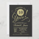 Invitación de fiesta de aniversario número 10 con patrón de pizarra y brillo dorado falso. ¡Salud por 10 años! Perfecto para una celebración elegante.